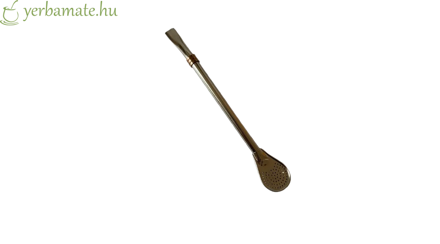 Rozsdamentes bombilla yerba mate teához kanalas szűrővel, rose gold díszítéssel.