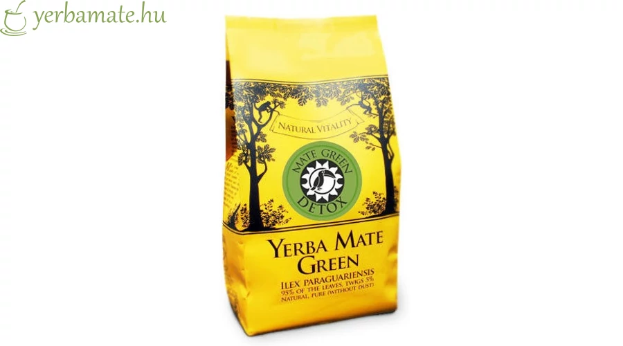 Összetevők: 93% zöld yerba mate, 7% máriatövis magok, méhfű, aszalt szilva ízzel.