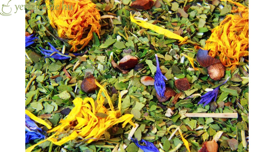 Összetevők: zöld yerba mate, guarana, menta, citromfű, búzavirág szirom, körömvirág szirom, mangó ízesítés